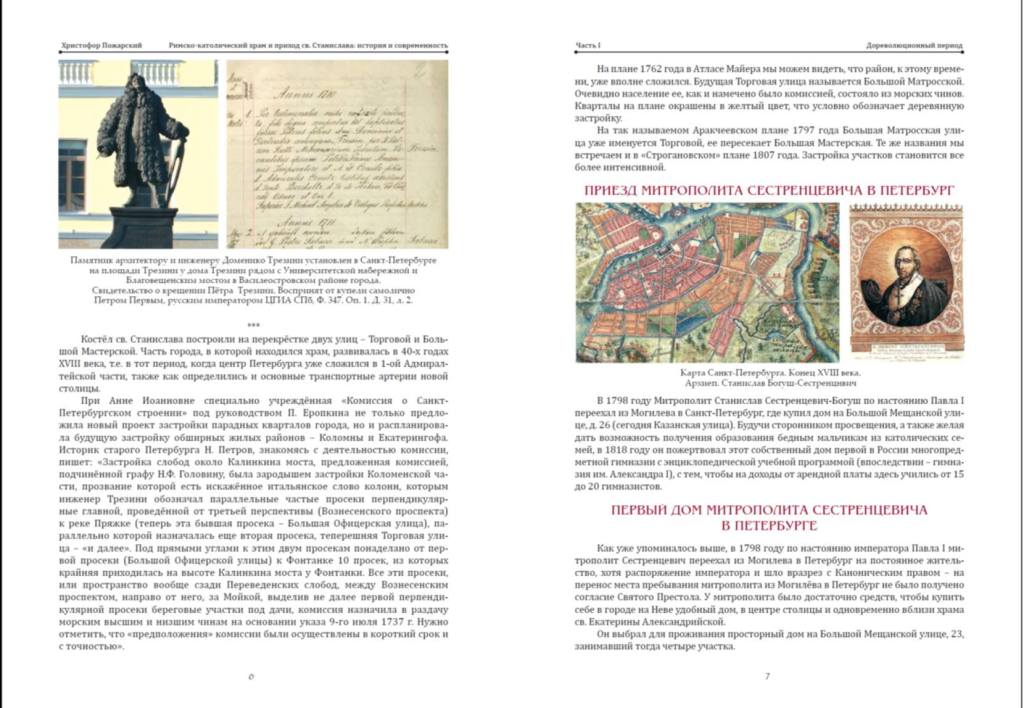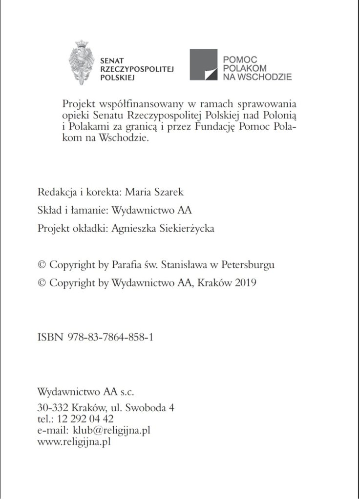 W połowie czerwca 2020 r. w mieście nad Newą ukazała się książka: „KOŚCIÓŁ RZYMSKOKATOLICKI I PARAFIA ŚW. STANISŁAWA, BISKUPA I MĘCZENNIKA W SANKT PETERSBURGU. HISTORIA I WSPÓŁCZESNOŚĆ. 1823–2020”. Autorem książki jest ks. Krzysztof Pożarski. Wydanie jest dobrze zilustrowane. Jest to książka o historii i współczesności parafii i kościoła, jednego z najpiękniejszych kościołów katolickich w Rosji, obejmujący okres od 1823 do 2020 roku. Ponadto wydanie zawiera materiały dotyczące historii szkoły parafialnej dla biednych dzieci i sierot, oparte na funduszach i woli metropolity Stanisława Siestrzeńcewicza-Bohusza, słynnego dobroczyńcy i filantropa. Szkoła ta była nierozerwalnie związany z kościołem. W wydaniu szeroko został omówiony okres bolszewickich i sowieckich prześladowań proboszczów i parafian, zamknięcie kościoła na 60 lat i jego odrodzenie w 1996 roku. Książka zawiera także kilkaset zdjęć związanych ze świątynią i współczesnym życiem parafii. Na początku maja 2025 r. parafia św. Stanisława będzie obchodzić 200. Rocznicę pierwszej konsekracji świątyni przez abp. Stanisława Siestrzeńcewicza. W ramach przygotowań do tego wydarzenia opublikowana została ta książka, której celem jest przybliżenie dwustuletniej historii kościoła i parafii nie tylko parafianom, ale także historykom i wszystkim zainteresowanym historią Kościoła rzymskokatolickiego w Rosji i historią Petersburga. To także część historii tradycji religijnych naszego wspaniałego miasta nad Newą. Parafia św. Stanisława zawsze była parafią wieloetniczną, głównie parafianami byli poza Polakami byli Litwini i Łotysze i Białorusini. W związku z tym kazania i inne nabożeństwa byli dla nich odprawiane na ich językach. Materiał historyczny do książki był gromadzony od ponad 20 lat, tj. od momentu mianowania proboszczem ks. Krzysztofa Pożarskiego. Celem wydania tej książki jest także przyczynek do rozwoju zainteresowania badaniem historii Kościoła katolickiego nie tylko w Petersburgu, ale także w Rosji.Ks. Krzysztof Pożarski, Proboszcz parafii św. Stanisław w Petersburgu*** Nakład książki wynosi 750 egzemplarzy, liczba stron wynosi 400 (z trzema kolorowymi zakładkami). Rozmiary książek: 220×155, papier kredowy, waga – 1,1 kg. Ofiara za jedną książkę – 450 rubli (30 PLN). + opłata pocztowa. Każdy, kto chce go otrzymać tę książkę może przyjść do kościoła św. Stanisława w Petersburgu lub zamówić ją przez pocztę. Adres: Ks. Krzysztof Pożarski, 190121, St. Petersburg, ul. Sojuza Pieczatnikow 22, tel. + 7 911 990 90 82, e-mail: ststanislas@list.ru