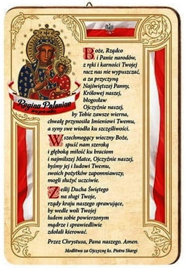 Modlitwa za Ojczyznę ks. Piotra Skargi do Matki Bożej Królowej Polski.