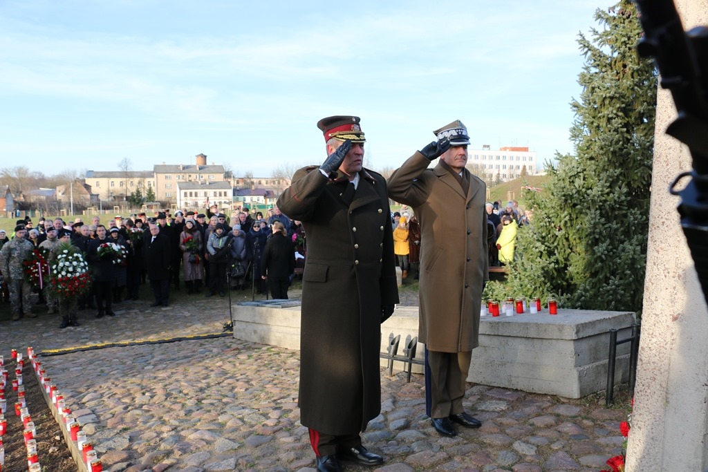 3 stycznia 1920 roku polskie oddziały wojskowe, jak i łotewskie pod naczelnym dowództwem gen. Edwarda Rydza-Śmigłego rozpoczęły ofensywę przeciwko bolszewikom o kryptonimie „Zima”, znaną także pod nazwą Kampania Łatgalska. Walki te doprowadziły do wyzwolenia Dyneburga, jak i całej Łatgalii. Chociaż dowództwo łotewskie postąpiło niehonorowo, zawierając wkrótce bez powiadomienia Polaków pokój z bolszewikami. W Kampanii Łatgalskiej wzięło udział 30 tys. polskich i 10 tys. łotewskich żołnierzy. W ciągu dwóch miesięcy Armia Czerwona została wyparta, co pozwoliło na zjednoczenie wszystkich ziem łotewskich. Polscy żołnierze zapłaciły jednak za wyzwolenie dawnych Polskich Inflant ogromną cenę, gdyż zginęło ponad 500. żołnierzy. Z czego 237 zostało pochowanych w Dyneburgu na katolickim Cmentarzu na Słobódce. Polski cmentarz wojskowy był uroczyście otwarty w 1926 roku przez najwyższe władze Republiki Łotewskiej. Umieszczono wówczas na pomniku napis w języku łotewskim: „Latvijas neatkaribas cinas krituso varonigo polijas karaviru dargai pieminai”,co w tłumaczeniu znaczy „Pamięci poległych bohaterskich żołnierzy polskich w walce o niepodległość Łotwy”. Zobacz zdjęcia! Cmentarz ten został całkowicie zniszczony w czasach władzy sowieckiej na Łotwie. Obecnie w tym miejscu postawiono 13. metrowy betonowy krzyż. U jego stóp umieszczono tablice z nazwiskami 145 żołnierzy, a także tablicę z informacją, że spoczywało tutaj jeszcze 28 nieznanych żołnierzach. W Dyneburgu jest jeszcze także kwatera 20 polskich żołnierzy na drugim cmentarzu katolickim. W dniu 3 stycznia 2020 roku na Łotwie odbyły się uroczyste obchody 100. Rocznicy wygnania bolszewików z Łatgalii przez połączone wojska polsko-łotewskie. Odbyły się one nie tylko Dyneburgu (Daugavpils), ale także w Krasławie. W tych uroczystościach wzięli udział m.in. Szef Sztabu Generalnego Wojska Polskiego generał Rajmund T. Andrzejczak, Dowódca Narodowych Sił Zbrojnych Republiki Łotewskiej gen. broni Leonids Kalnins, Ambasador RP w Rydze dr Monika Michaliszyn, wicepremier parlamentu Łotewskiego Janis Bordans. Pod krzyżem na Słobódce, w uroczystości z udziałem kompanii honorowej Polskiego Kontyngentu Wojskowego, odczytano Apel Pamięci oraz złożono kwiaty. Następnie pod urzędem miasta Daugavpils odbyło się oficjalne odsłonięcie odrestaurowanej tablicy pamiątkowej ku czci poległych w operacji „Zima”. Jednym z punktów obchodów było uroczyste także odsłonięcie po renowacji w 2019 r. pomnika poświęconego poległym polskim żołnierzom na cmentarzu w Krasławiu (ok. 40 km od Daugavpils) dzięki funduszom Ministerstwo Kultury i Dziedzictwa Narodowego. Zostało w mieście pochowanych 87 żołnierzy zmarłych w wyniku chorób, ran i odmrożeń (45 znanych oraz 42 nieznanych), a także poległych w walkach o te ziemie. W Krasławie cmentarz polskich żołnierzy został odsłonięto w 1928 roku, dzięki staraniom S. Łazewicza, miejscowego nauczyciela. Na pomniku wdzięczności umieszczono wtedy napis: „Bohaterowie Wojska Polskiego, którzy zginęli w 1920 roku za wyzwolenie Łotwy. Spoczywają tutaj żołnierze 3. Dywizji legionistów polskich”. Ponadto marmurowa tablica zawierała nazwiska 45 poległych żołnierzy, a także była informacja o jeszcze 42 nieznanych żołnierzach tutaj pochowanych. Pomnik ten został wzniesiony przez oddział Towarzystwa Łotewsko-Polskiego w Dyneburgu. W uroczystości odsłonięcia w 1928 roku wziął udział minister wojny E. Kalnins. Na cmentarzu w ŁAWKIESACH spoczywa obecnie (po przeniesieniu szczątków 9 żołnierzy z Katymiołki) 74 żołnierzy, w kwaterze w WYSZKACH – 42 żołnierzy, na cmentarzu w ŁOCIKACH w grobie zbiorowym spoczywa 6 żołnierzy, a w BUKMUJŻY na miejscowym cmentarzu znajdują się groby 3 żołnierzy. Przez Radę OPWiM zostały też upamiętnione pomnikami w formie krzyża legionowego mogiły polskich żołnierzy w PIESKACH, DERWANISZKACH, PUTRAMISZKACH, WARNOWICACH, JÓZEFOWIE (Naujene) i JANKISZKACH. Trwają dalsze poszukiwania mogił przeprowadzane z wykorzystaniem źródeł archiwalnych. Pod koniec czerwca 2018 roku w Dyneburgu przebywała także Para Prezydencka, która w ten sposób uczciła 100. Lecie odzyskania przez Łotwę Niepodległości (zobacz zdjęcia).W Dyneburgu znajduje się także tablica pamiątkowa na budynku, gdzie w 1920 roku odbyło się spotkanie Józefa Piłsudskiego z Jānisem Balodisem. Treść tablicy jest następująca:„27.01.1920 r. w Dyneburgu, w okresie wspólnych walk z bolszewikami o wyzwolenie Łotwy, Naczelny Wódz Wojska Polskiego, Naczelnik PaństwaJÓZEF PIŁSUDSKIodbył spotkanie z Naczelnym Wodzem Armii Łotewskiej gen. Janisem Bolodisem, wizytował polskie oddziały oraz udekorował gen. E. Rydza-Śmigłego, za zwycięską kampanię Łatgalską, orderem Virtuti Militari. Władze łotewskie odznaczyły Józefa Piłsudskiego, gen. Rydzy-Śmigłego, który otrzymał też Order Trzech Gwiazd i Order Niepodległości oraz 61 żołnierzy polskich Orderami Laczplesisa.Rada ochrony Pamięci Walk i MęczeństwaAmbasada” Widzimy przez to, że to dzisiaj sami Polacy troszczą się dzisiaj o groby polskich żołnierzy, którzy przelali swoją krew za Łotwę, a Łotysze tylko się temu przyglądają. Dobrze jeszcze, że chociaż nie przeszkadzają!