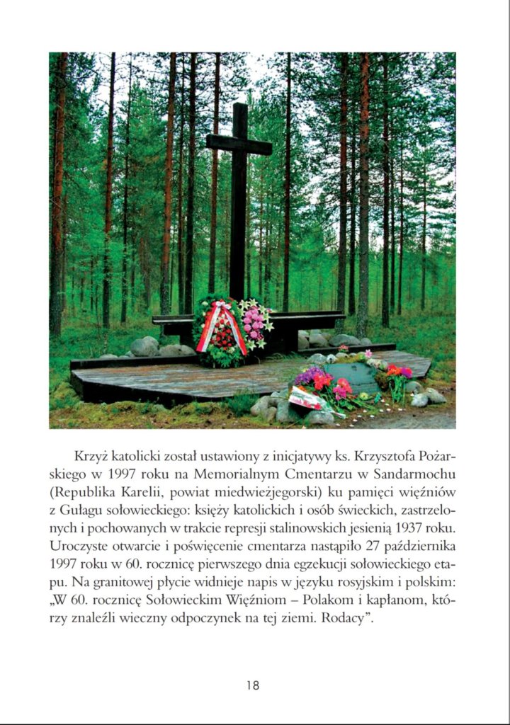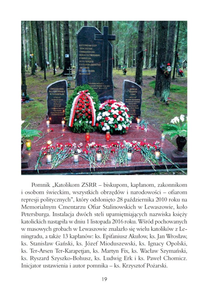Священник собрал имена всех репрессированных на Северо-Западе поляков в мартиролог и установил памятник, объединяющий католиков разных национальностей. На стеле выведены имена 13 расстрелянных священнослужителей.