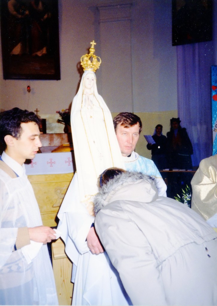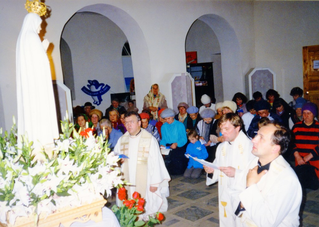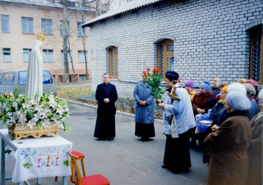 Są to fotografie zrobione przez mnie jw 1996 roku, kiedyś nie było jeszcze oddanych kościołów i często na ulicy witano figurę Matki Bożej, tak jak to było w Pietrozawodsku. Z pewnością parafianie tych parafii po raz pierwszy zobaczą, jak statua Matki Boskiej z Fatimy nawiedzała ich parafie i miasta. Przeżyjmy, to jeszcze raz!