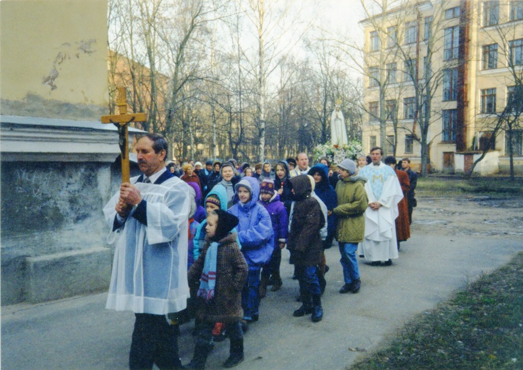 W odpowiedzi na tę prośbę zeskanowałem i wysłałem do Kaliningradu 56 zdjęć z pielgrzymki figury Matki Bożej z tych parafii, którymi się wtedy opiekowałem: z Petersburga (z dwóch parafii), Pskowa, Ługi, Murmańska, Nowogrodu Wielkiego, a także z Pietrozawodska.