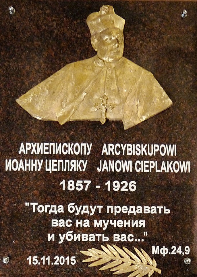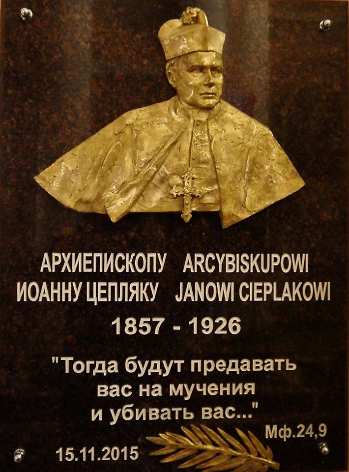 Pochodzący z Dąbrowy Górniczej Jan Cieplak przyjął święcenia kapłańskie w 1881 r. w Petersburgu. Wykładał w tamtejszej Akademii Duchownej, a w 1908 r. został biskupem sufraganem mohylewskim. Od 1914 był administratorem archidiecezji mohylewskiej (od 1919 r. jako arcybiskup tytularny). Dwukrotnie aresztowany przez bolszewików w 1920 i 1922, został w 1923 r. osądzony w Moskwie w procesie pokazowym, na którym wraz z 14 innymi duchownymi został skazany na karę śmierci za „podżeganie do buntu poprzez zabobony”. Jednak dzięki staraniom rządu polskiego wyrok zamieniono na 10 lat więzienia, a w 1924 r. wydalono go z ZSRR. W grudniu 1925 r. papież Pius XI mianował go arcybiskupem wileńskim, ale nominat zmarł przed objęciem diecezji. W 1952 r. rozpoczęto starania o beatyfikację abp. Cieplaka.