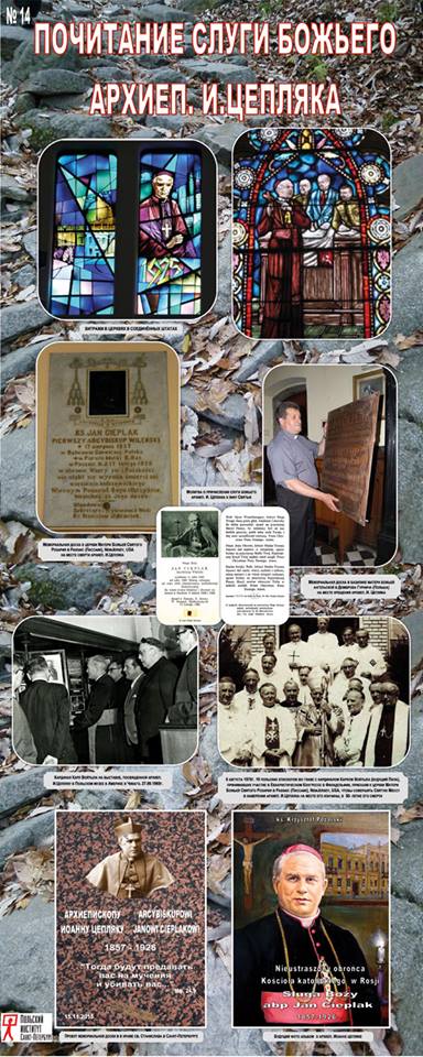 Czternaście banerów (w formie 14 plansz o wymiarach 2mx0.8m) na wystawę o abp. Janie Cieplaku, która zostanie otwarta w dniu 14.11.2015 roku w kościele św. Stanisława w Sankt Petersburgu w czasie rozpooczęcia Konferencji „Znaczenie życia i działalności arcybiskupa Jana Cieplaka dla Kościoła katolickiego w Rosji i w Polsce. 1882 – 1926”