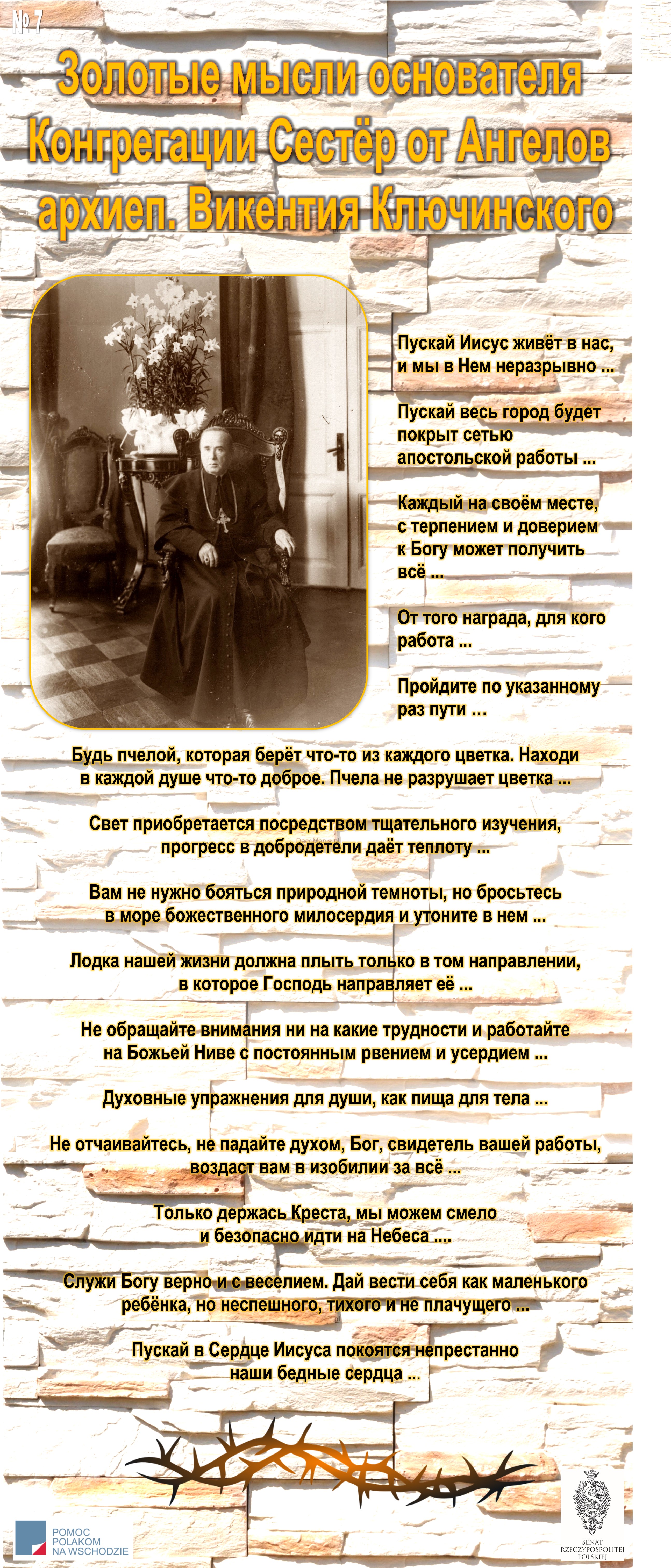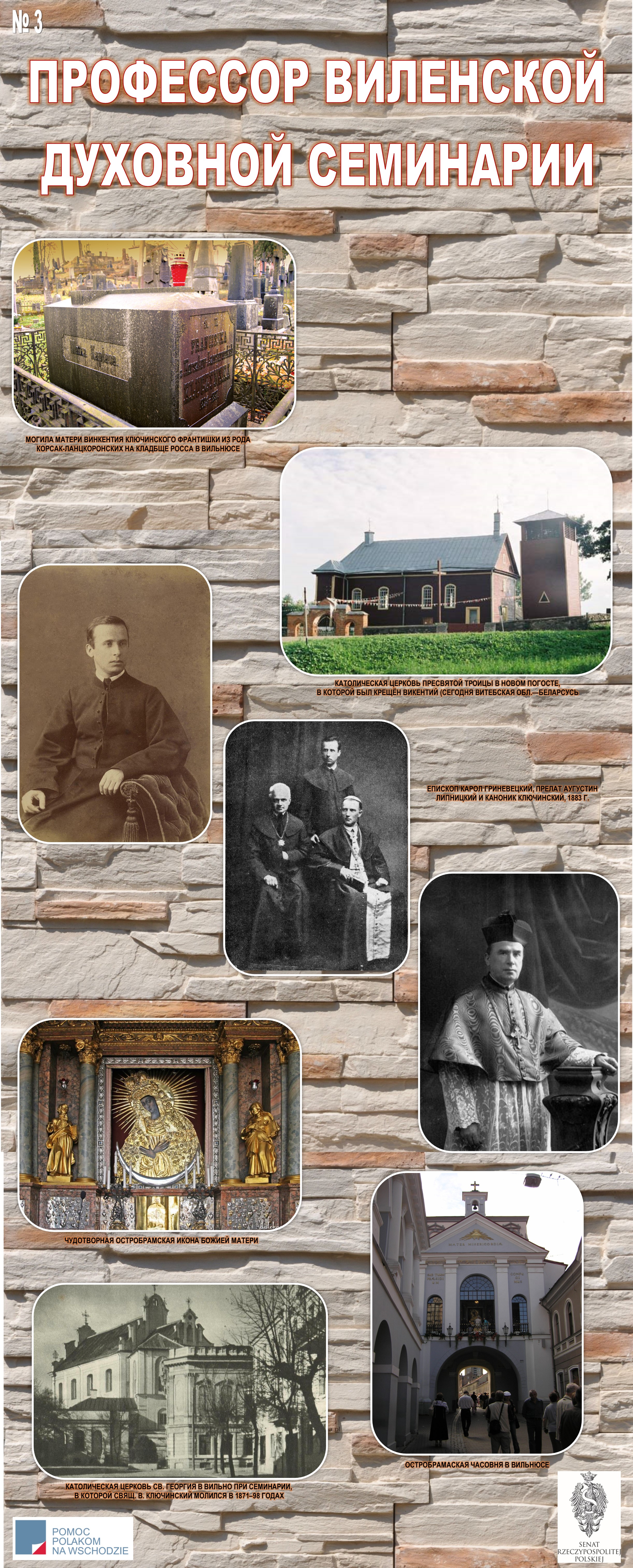 Викентий Ключинский (1847-1917) – выпускник Виленской духовной семинарии и Санкт-Петербургской Духовной Академии, архиепископ-митрополит Могилёвской митрополии Римско-Католической Церкви в России в 1910-1914 гг., инициатор создания женской монашеской Конгрегации Сестёр от Ангелов. 16 мая 1910 г. возведен в епископское достоинство и возглавил Могилевскую митрополию РКЦ в России. В августе 1914 г. Викентий Ключинский оставил митрополичью кафедру. Умер 10 февраля 1917 г.