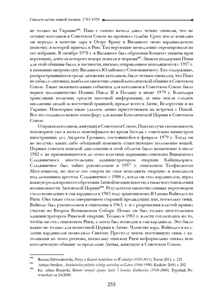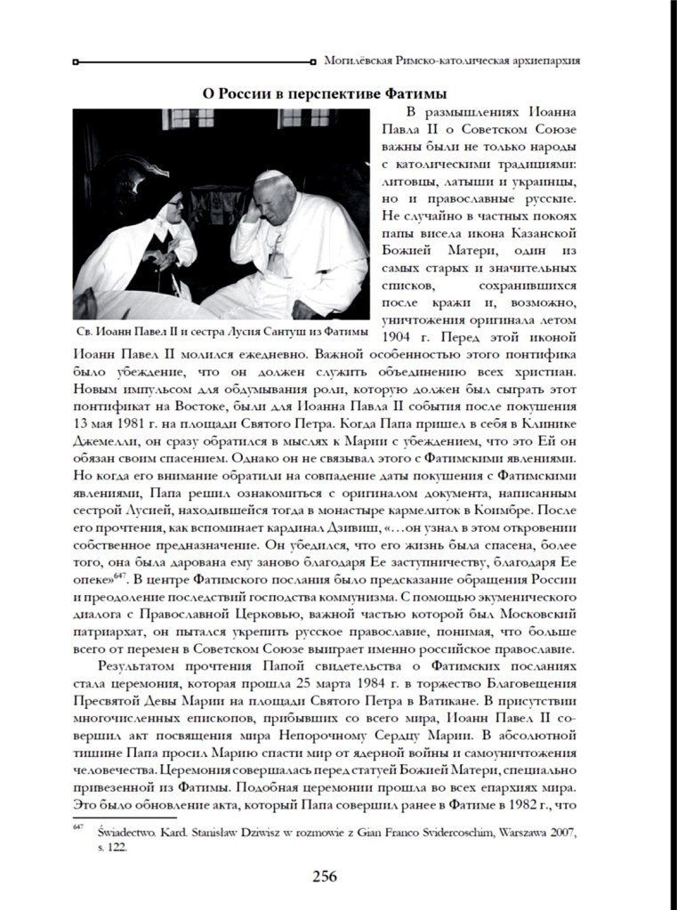 [1] Подробнее об этом пишет свящ. Роман Дзвонковский в книге Religia i Kościół katolicki w ZSRS oraz w krajach i na ziemiach okupowanych 1917-1991. Kronika, Lublin 2010.