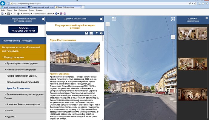 Виртуальная экскурсия по храму св. Станислава – это проект Государственного музея истории религии в Санкт-Петербурге в рамках более широкого проекта «Виртуальная экскурсия «Религиозный мир Петербурга»», где будут представлены избранные святыни всех религий. На сайте, который еще не до конца разработан будет также представлена Римско-католическая Церковь (католицизм на экспозиции музея и католицизм в Санкт-Петербурге).